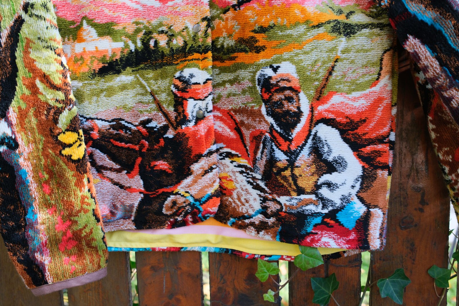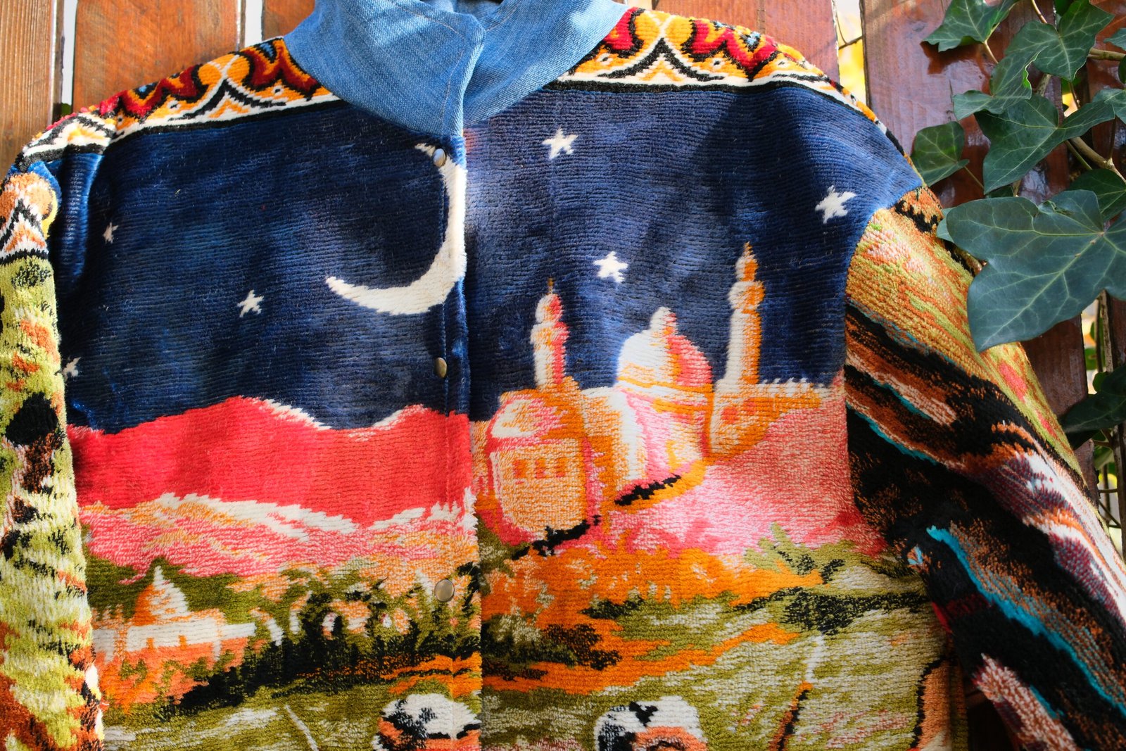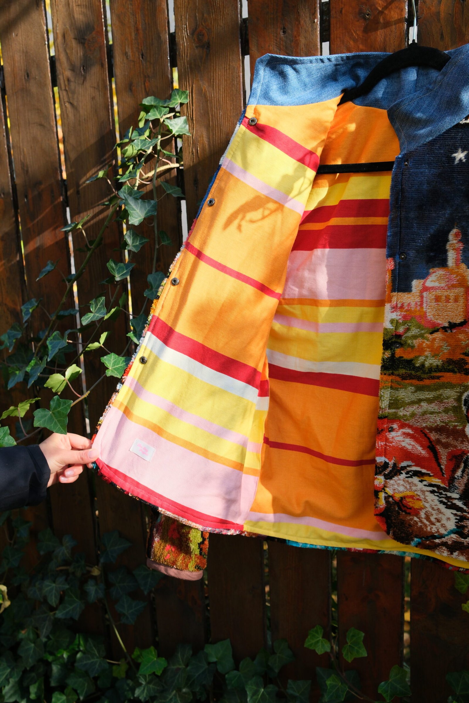 Este căptușită cu bumbac, nu are buzunare și se închide cu capse.