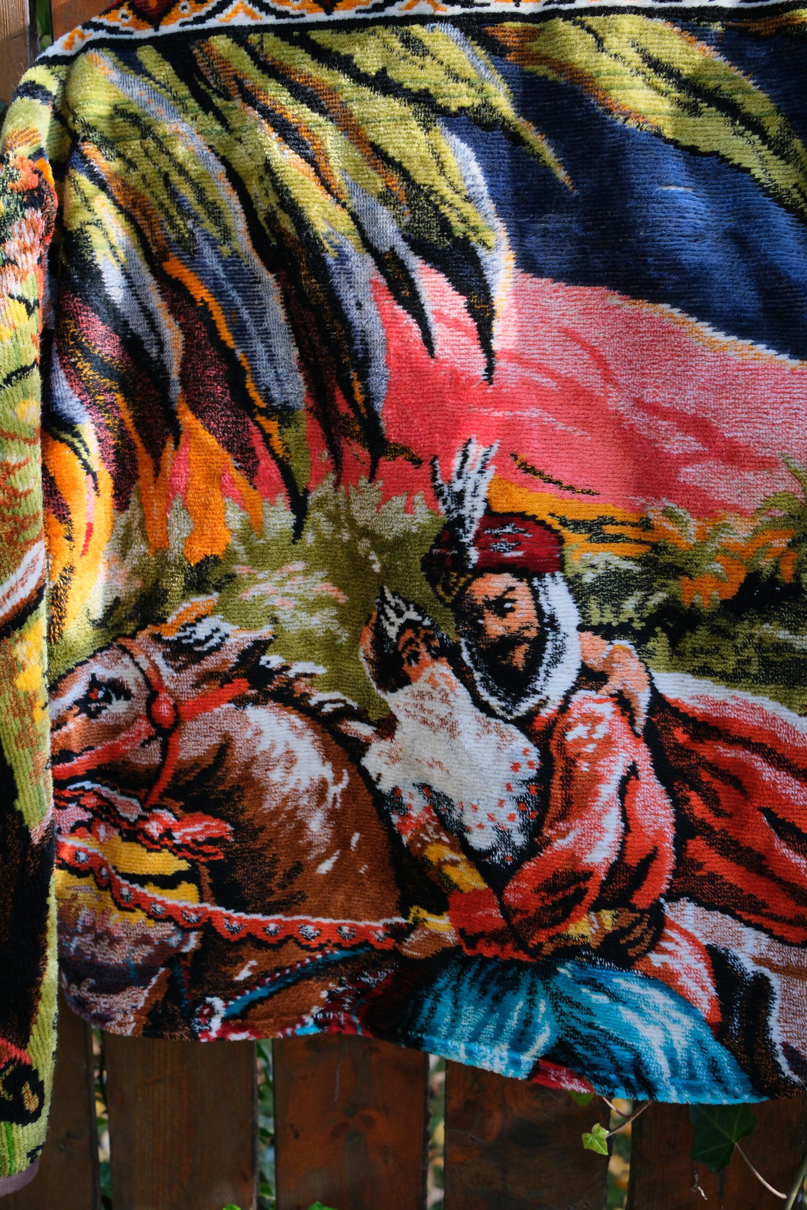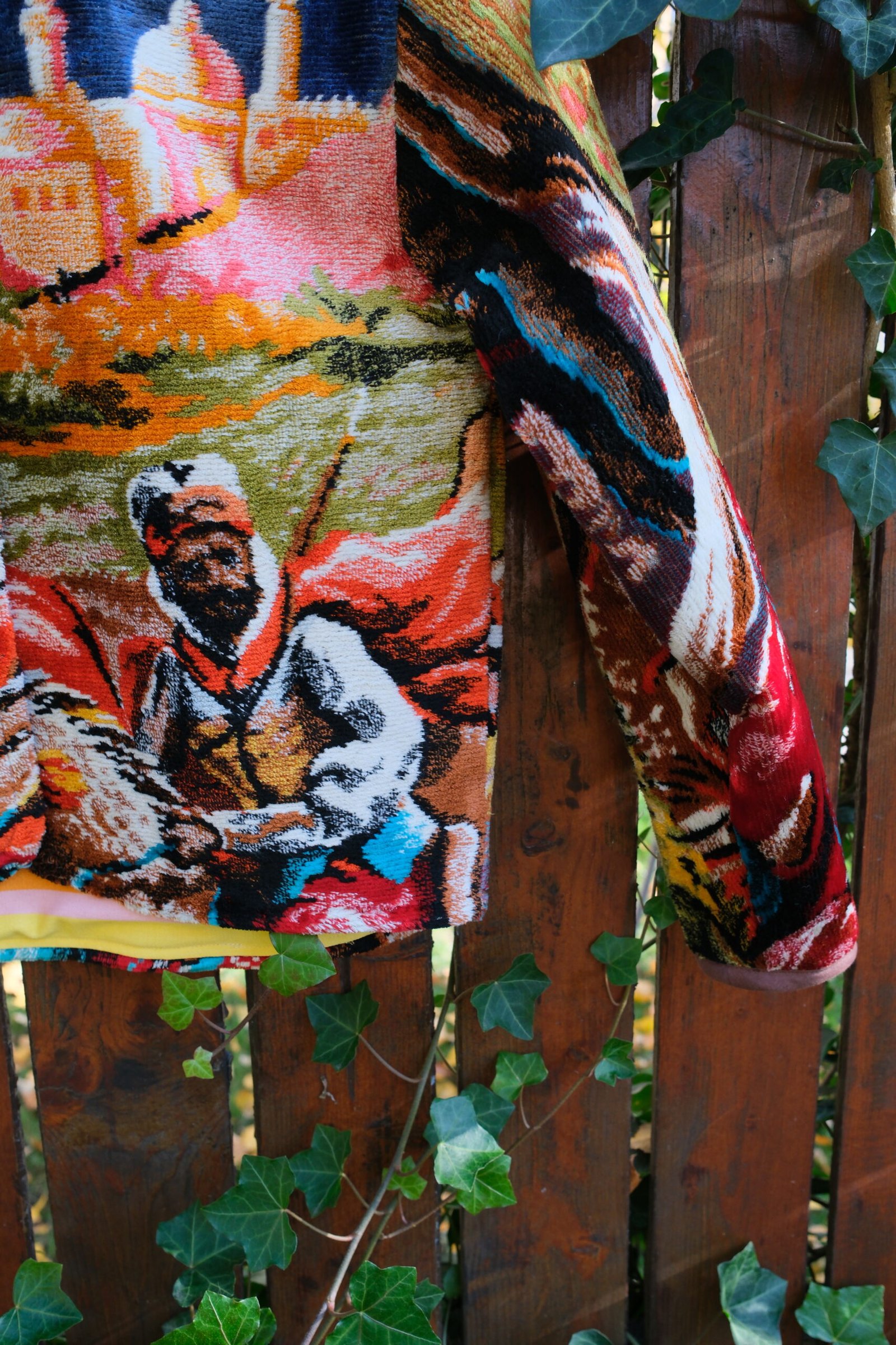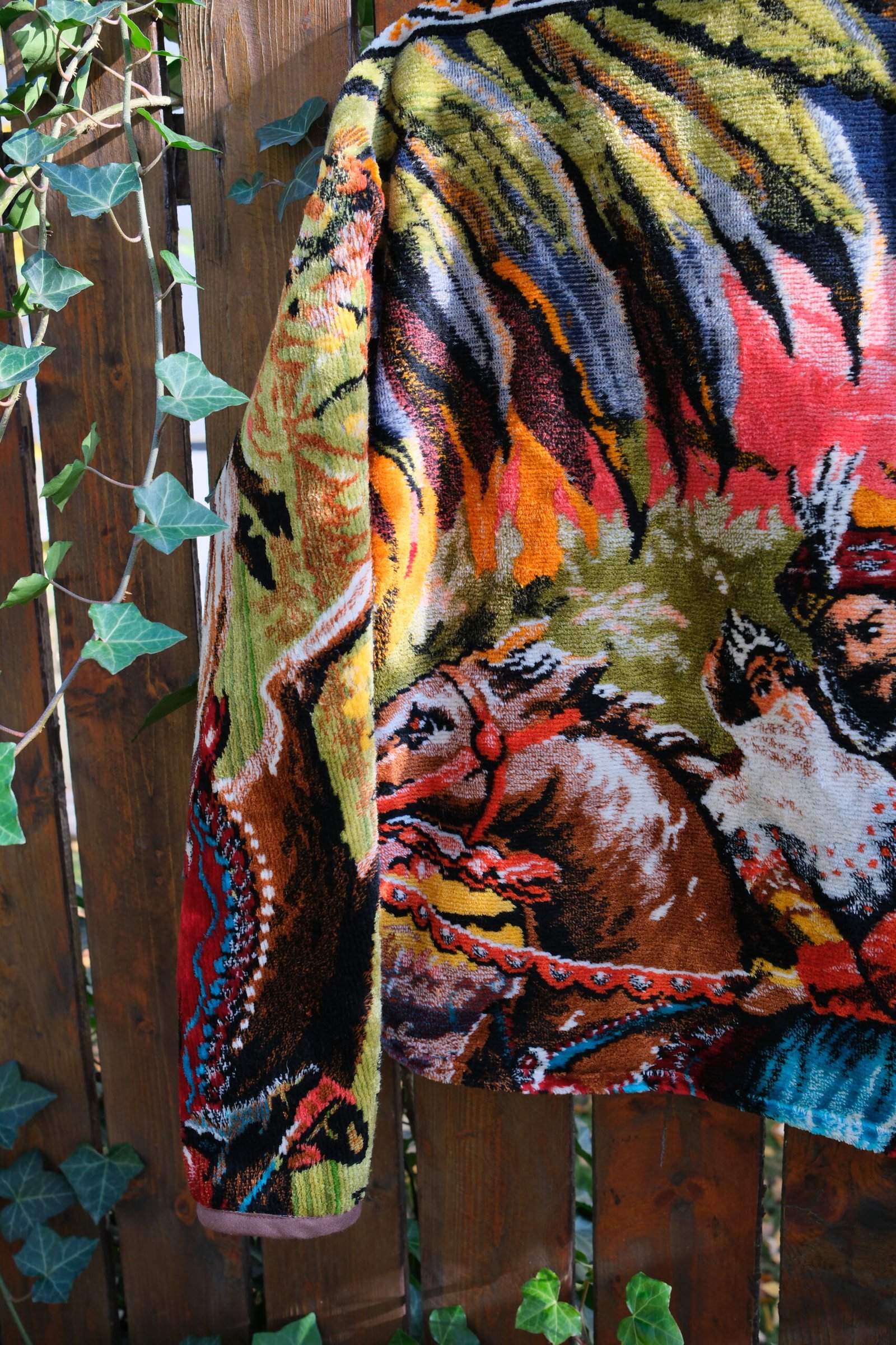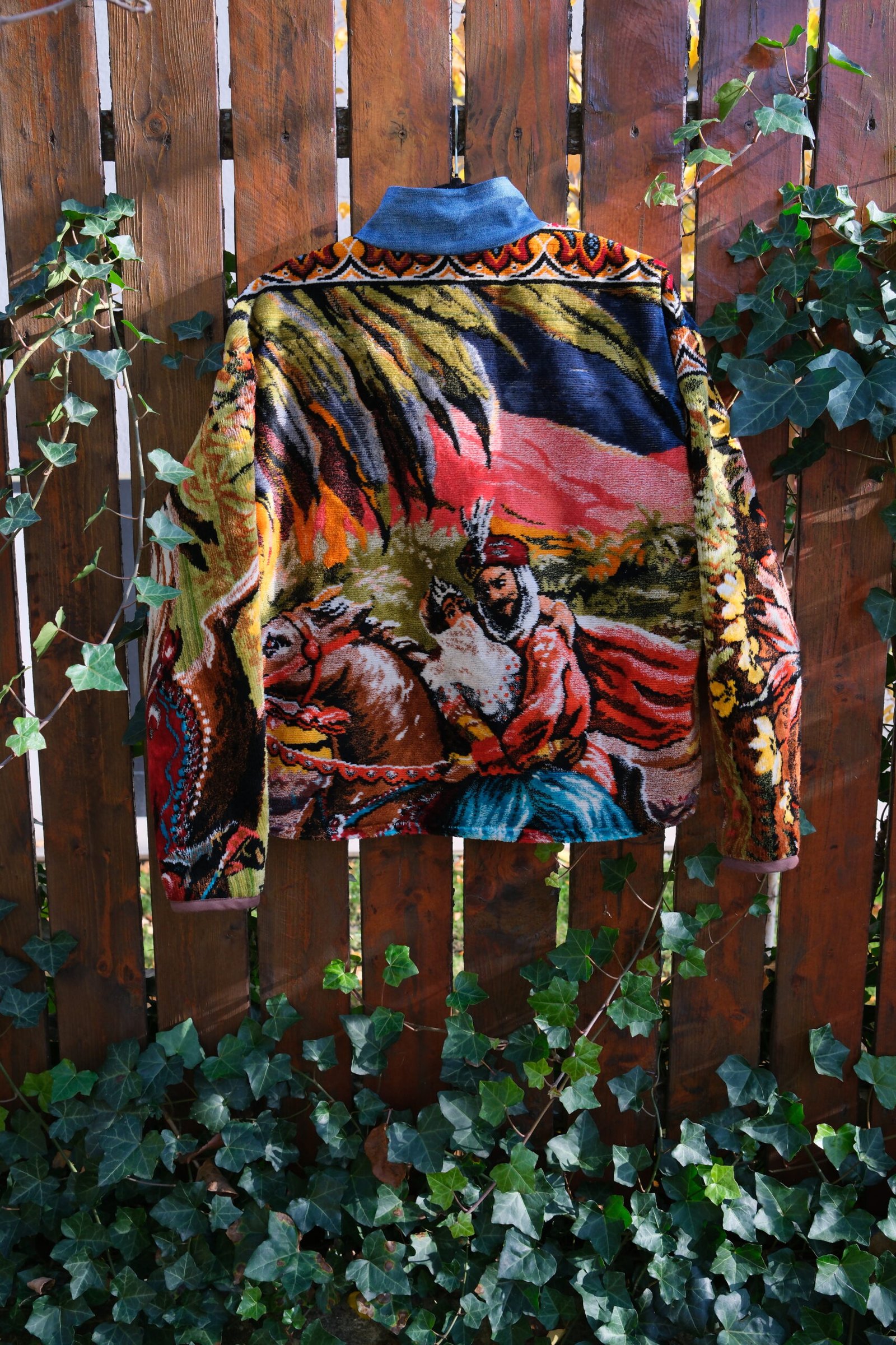 Este căptușită cu bumbac, nu are buzunare și se închide cu capse.